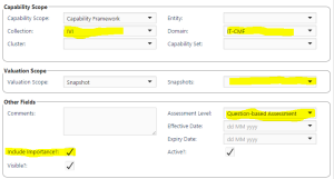 Further down in the dialog box, select “Question-based Assessment” in the Assessment Level. There are about 70 assessment questions across 35 critical capabilities, thereby asking two questions per critical capability. If you want to assess at the capability-level thus asking only one summary questions per critical capability, select capability-level assessment from the drop-down box.